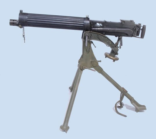 The issued Vickers tripod was the Mk. IV. Vickers Mk IV tripods were manufactured in Britain, Australia, and the US.
